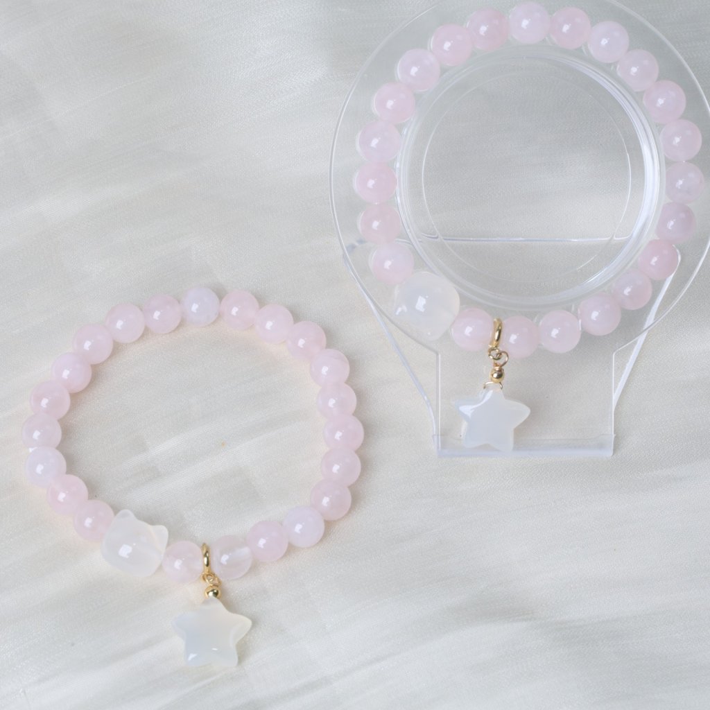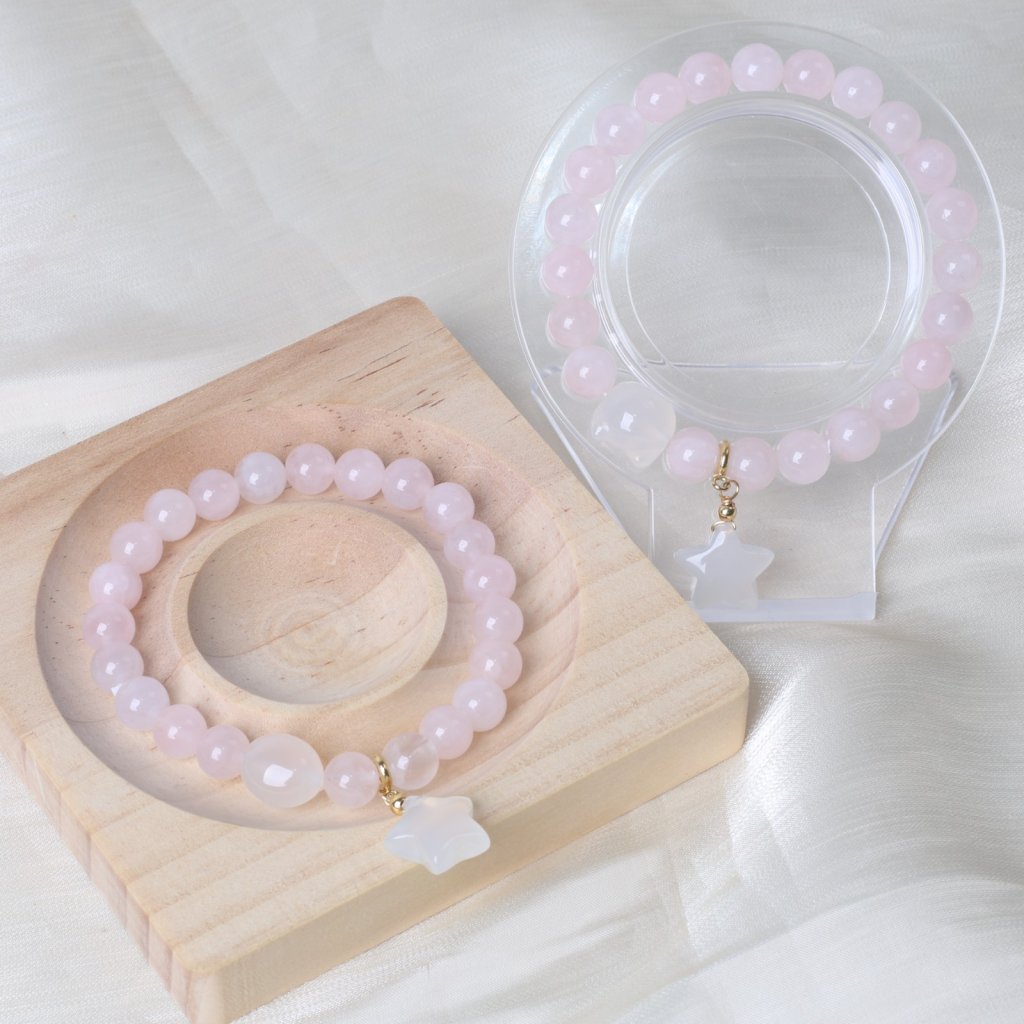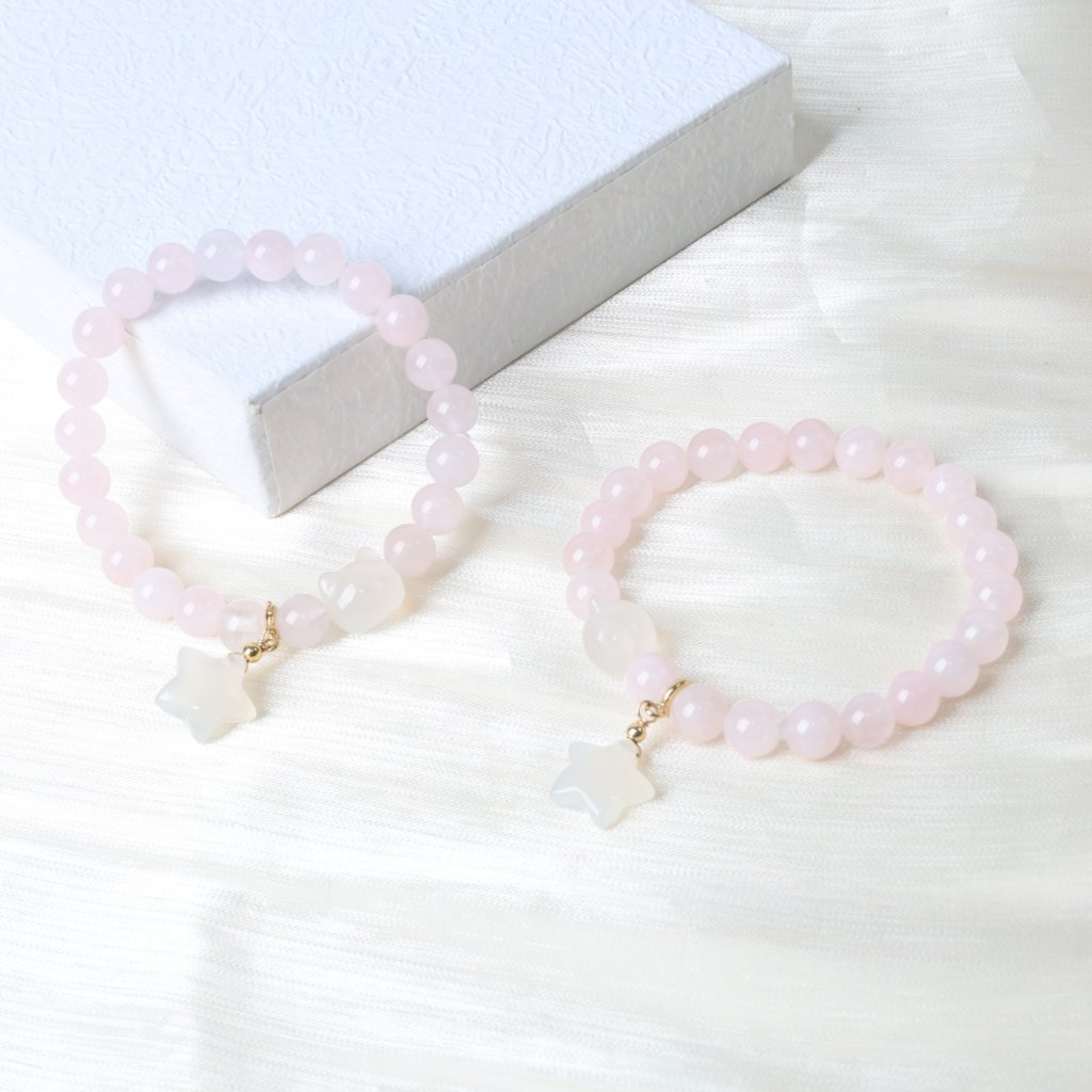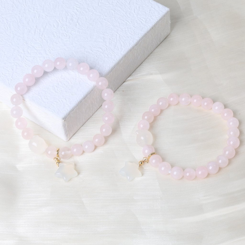 更特別的是 “星願” 概念:戴上它時,仿佛把自己的小小心願(不管是愛情、友情還是事業人緣)“寄託” 在珠子裏,每次抬手看到手腕上的柔粉光澤,都能想起對生活的美好期待,儀式感直接拉滿。日常搭配通勤裝,能中和正裝的嚴肅感;搭配休閒裝,又能增添幾分溫柔氣質,讓你在任何場合都自帶 “閃光點”。